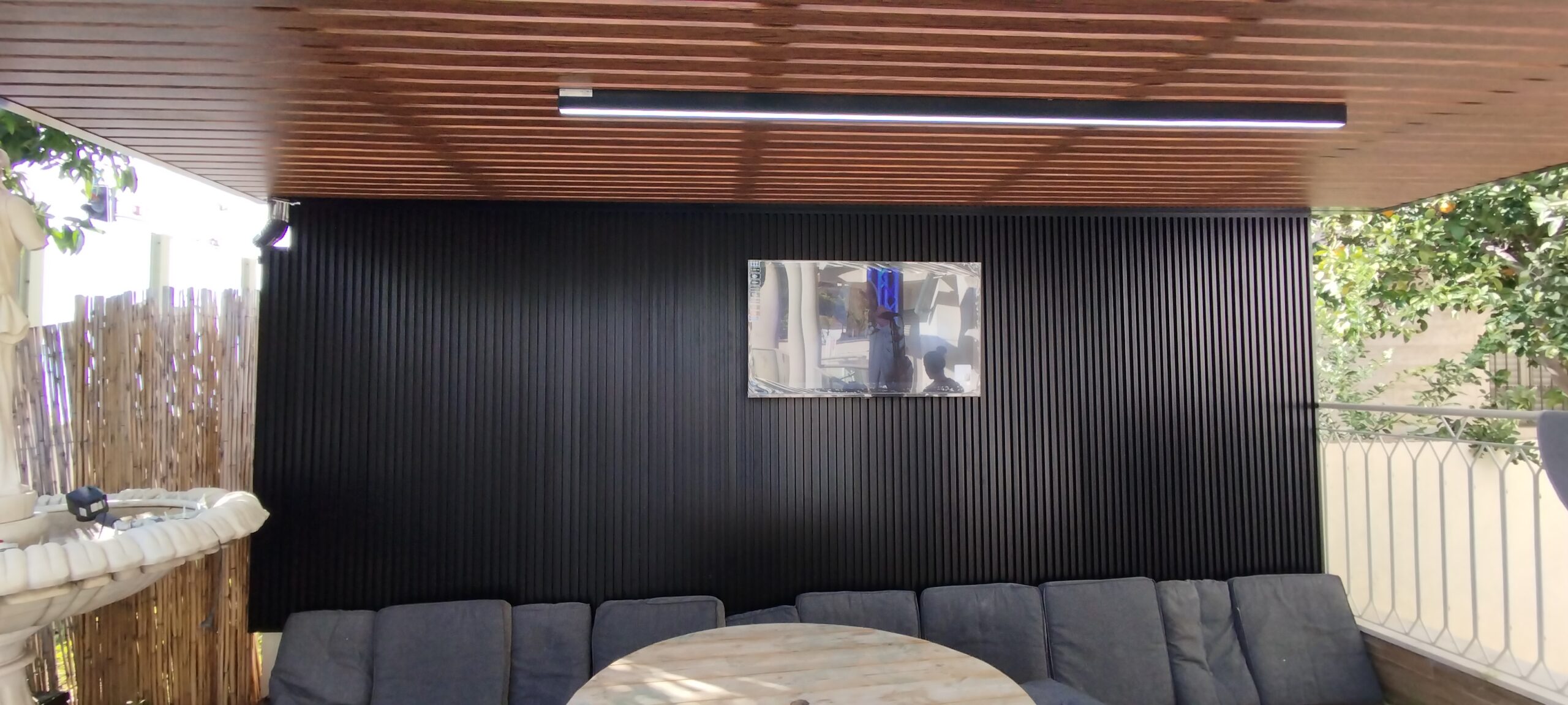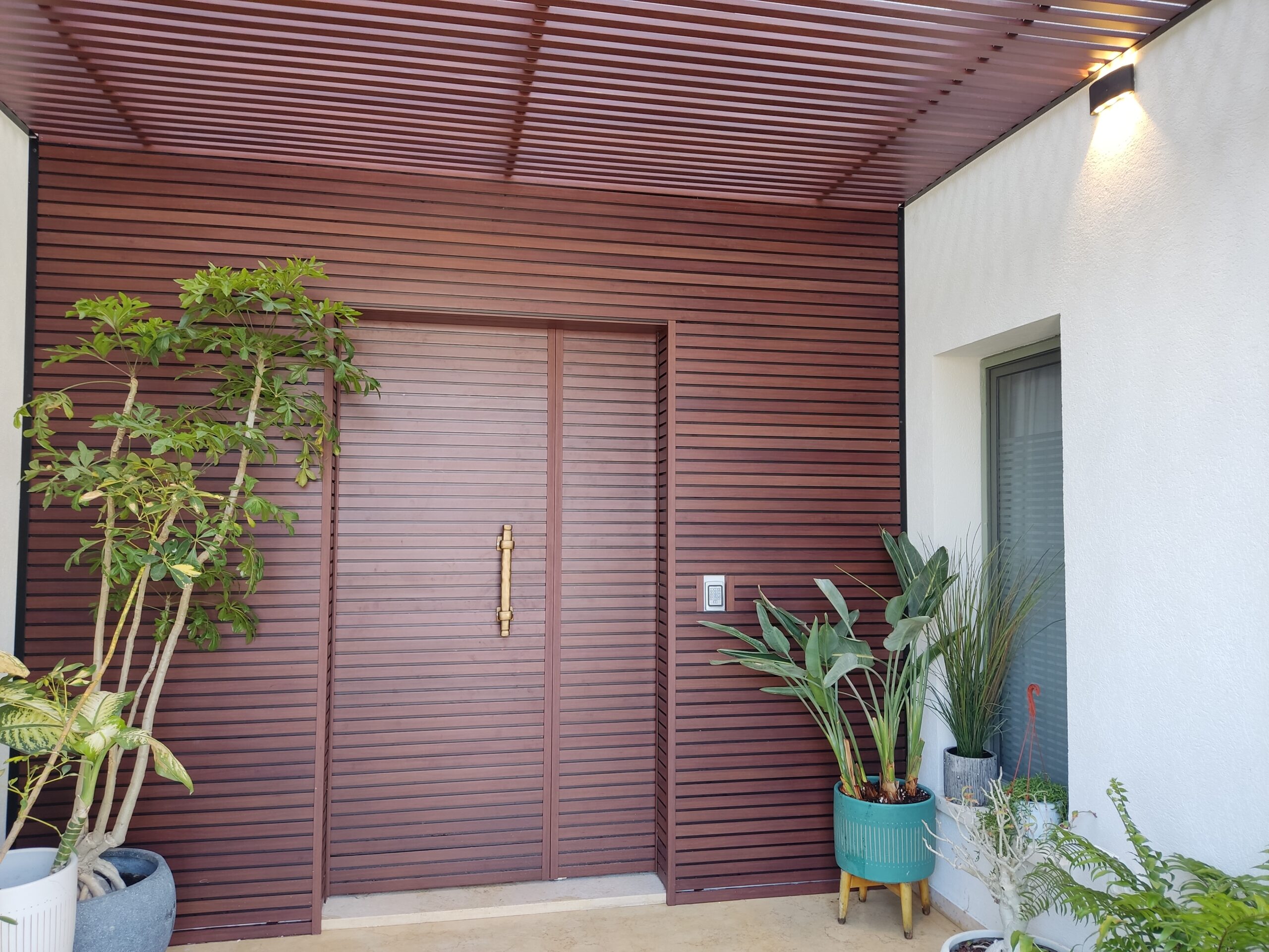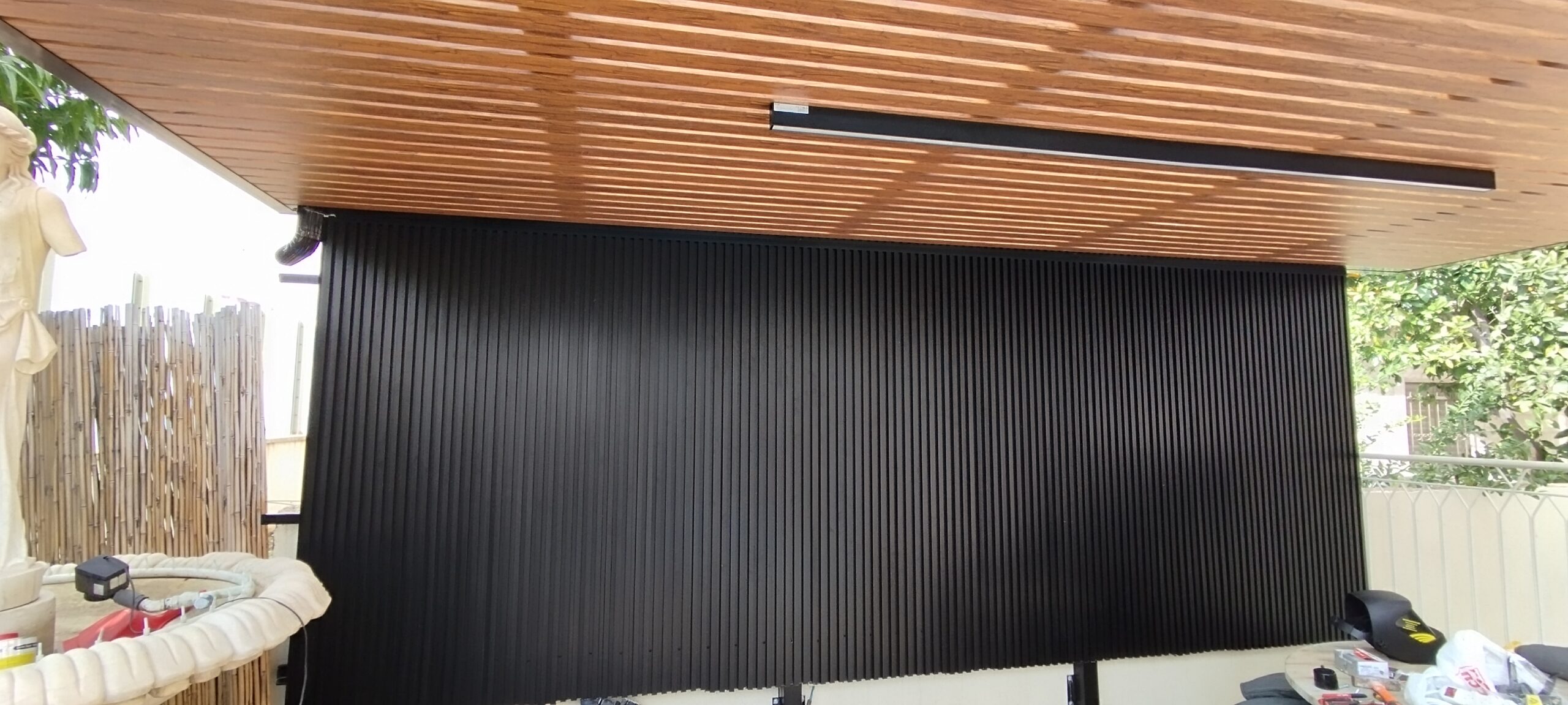 פרגולה אלומיניום עם הצללה דמוי עץ