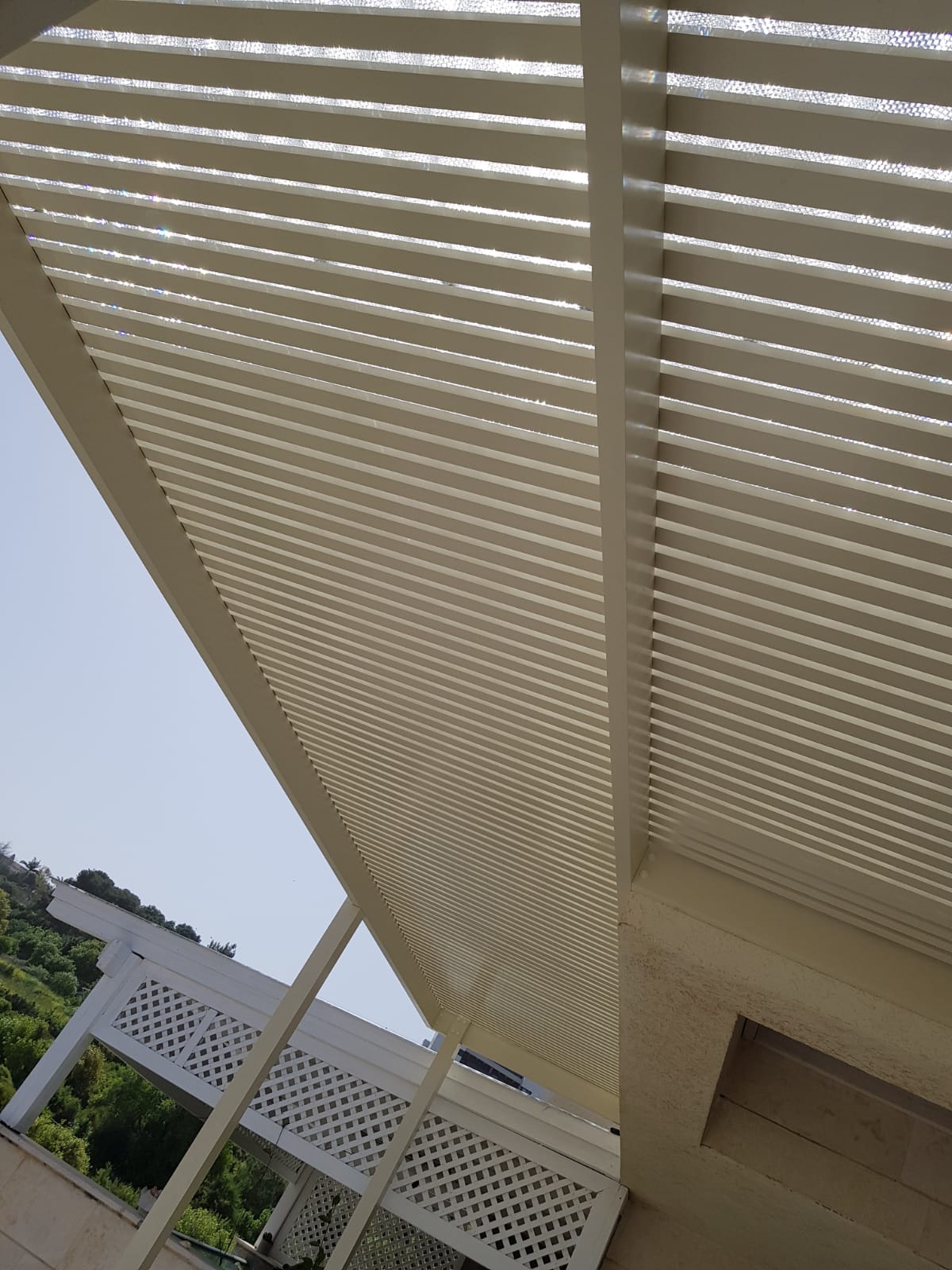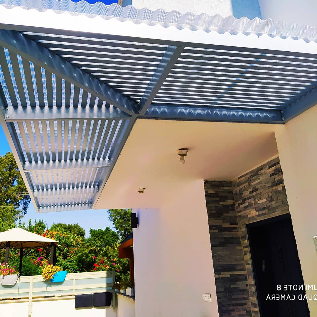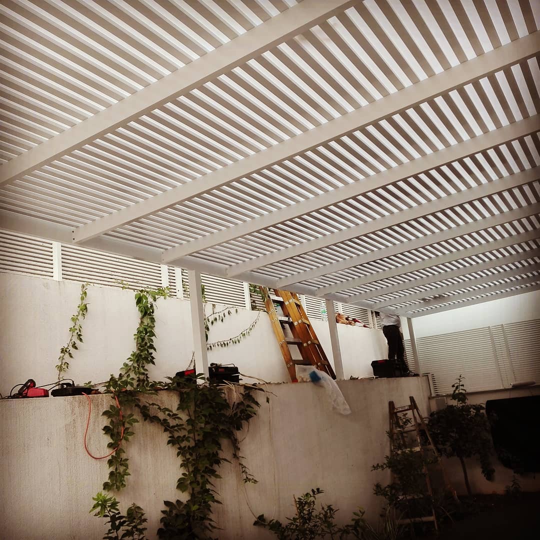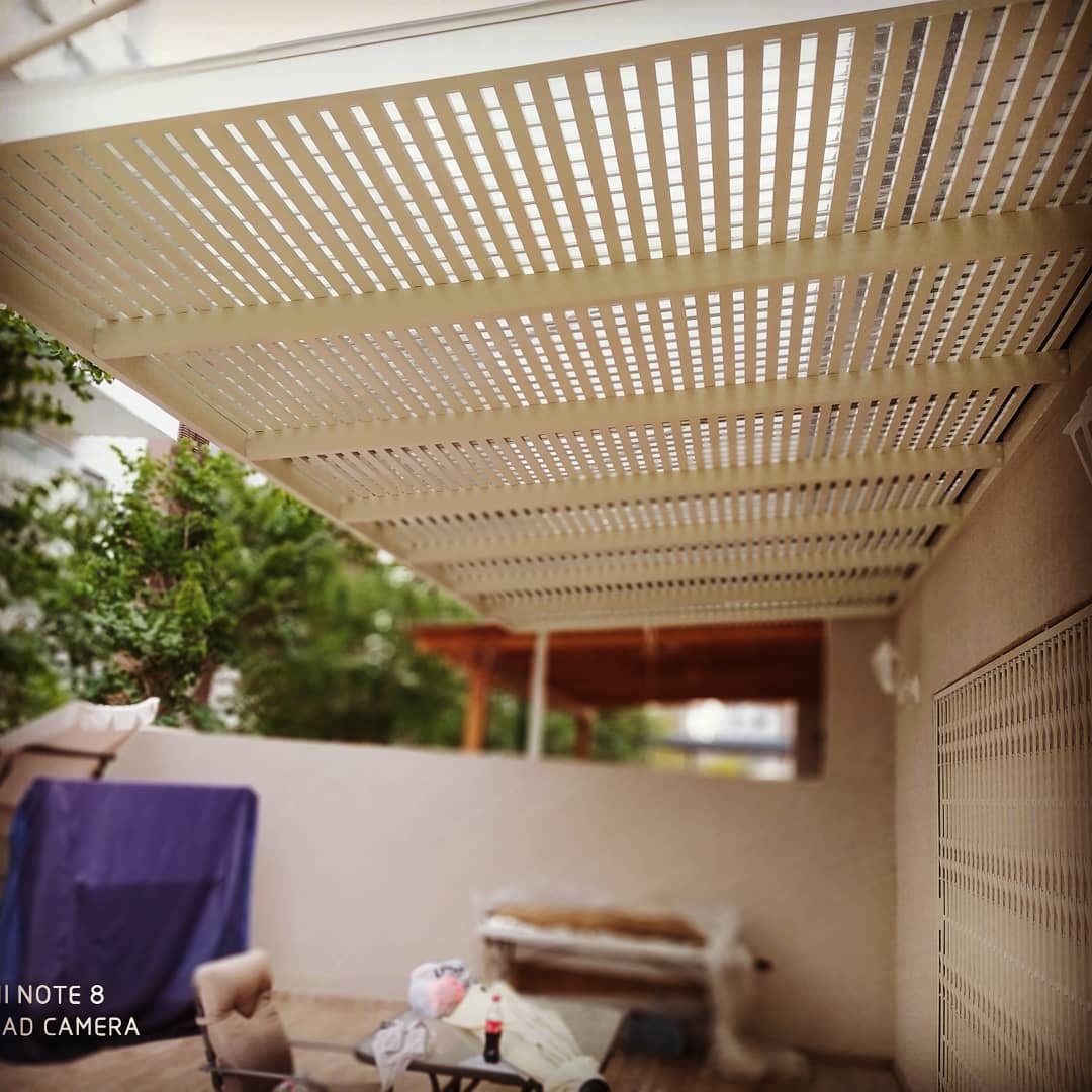 פרגולה קבועה הצללה עליונה. פרגולת אלומיניום קבועה דגם היי-טק הצללה עליונה פרופיל 120/40 רווח 2 ס”מ או 3-4 ס”מ קרוי נגד חדירת גשם סנטף\סנטף BH שקוף. פרגולת הייטק היא פרגולה עם טוויסט מודרני. עשוייה מאלומיניום ובעלת עיצוב מלוטש והיי-טקי. פרגולות אלו מותקנות בדרך כלל במרפסות, בתי עסק או בכניסה לבתים.